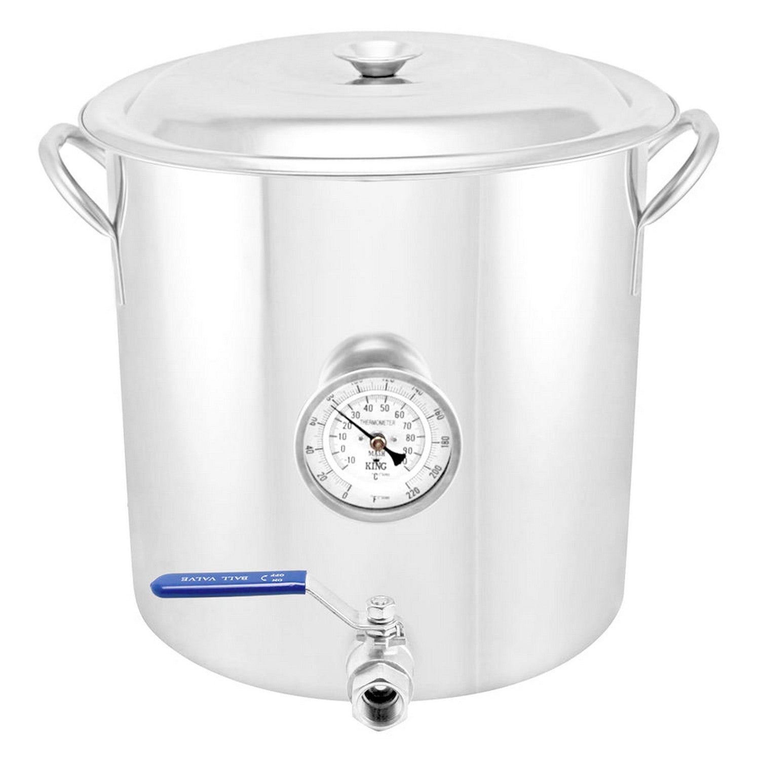 The 5 Gallon Stainless Steel Weldless Brew Kettle is a basic entry level brew pot that comes with a lid and weldless hardware. Capacity of 5 (US) gallons (19L, 20 Quart). It is a thinner gauge than our brand name OBKettles. Some dents and minor imperfections may be on the pot. This brew kettle features a weldless kettle kit, a OBK thermometer, a sturdy lid and a beautiful finish.