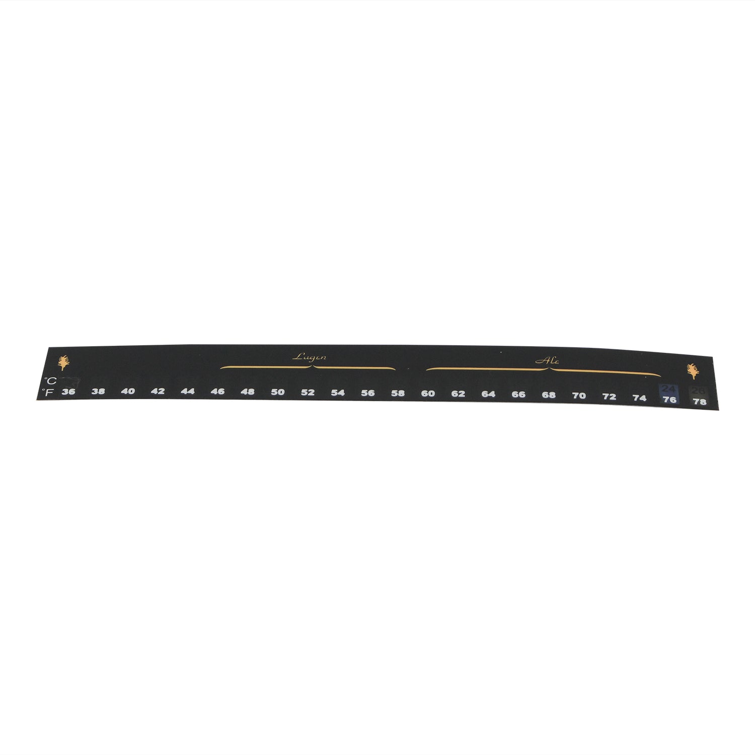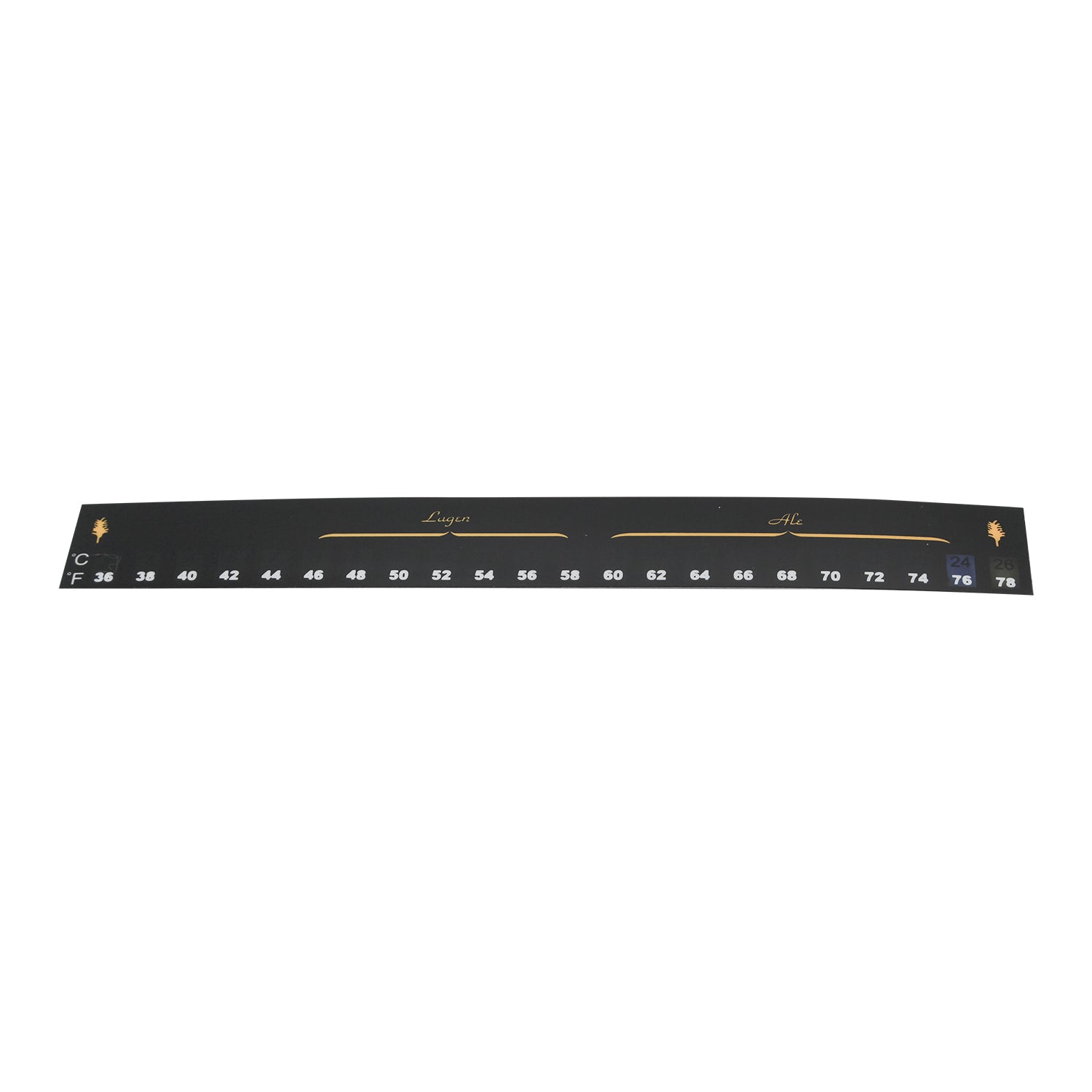 Liquid crystal thermometer with a peel-off adhesive back, 36°-78° F range, 2° increments. Stick it on the side of a carboy or bucket to monitor fermentation temperature; lasts forever. Strong adhesive will not peel off or get damaged, so be sure to purchase one for each fermenting bucket/carboy you plan on using.