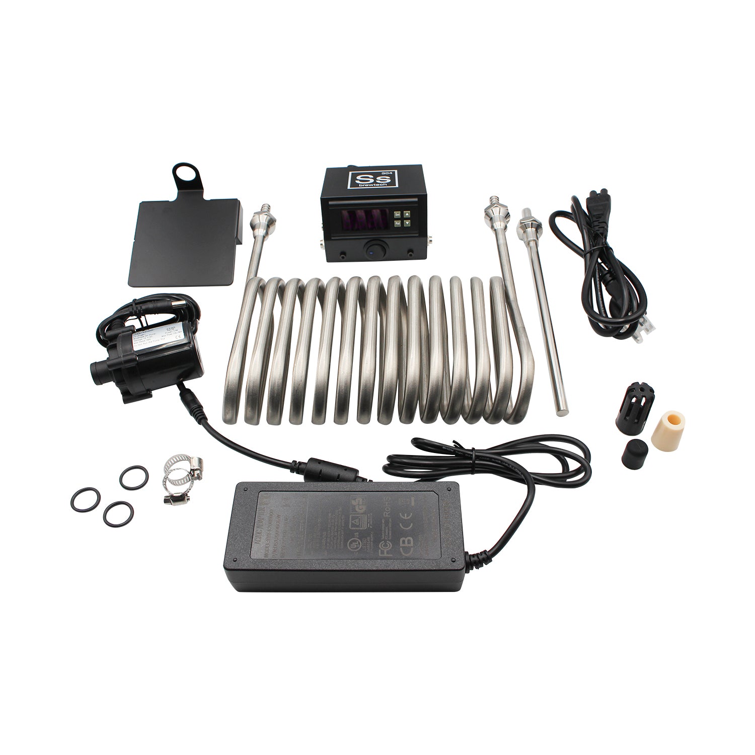 The Ss Brewtech FTSs Heating and Chilling for Standard Chronical 7 Gallon Fermenter is the top of the line when it comes to controlling your beer's temperature thanks to its innovative design. It features a 2 way switchable controller and allows for both heating and cooling with one simple system. The chiller coil works in tandem with the FTSs to give full control over the cooling of your wort. Just set your desired temperature with the controller, provide a cold water source, attach the heating pad underneath the neoprene jacket, plug into the wall and you are good to go. The system with fully monitor and adjust the temperature based on your preset whether it gets cold or warm.
