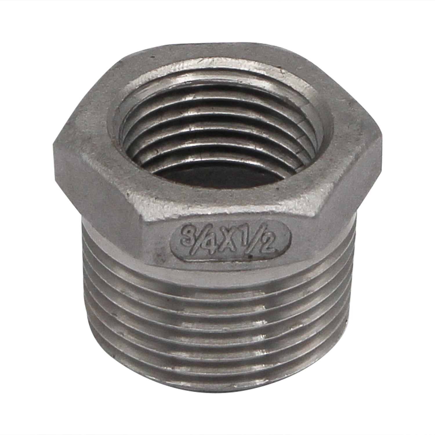 3/4" X 1/2" Female NPT Reducer Bushing - 304 Stainless Steel Pipe Fitting