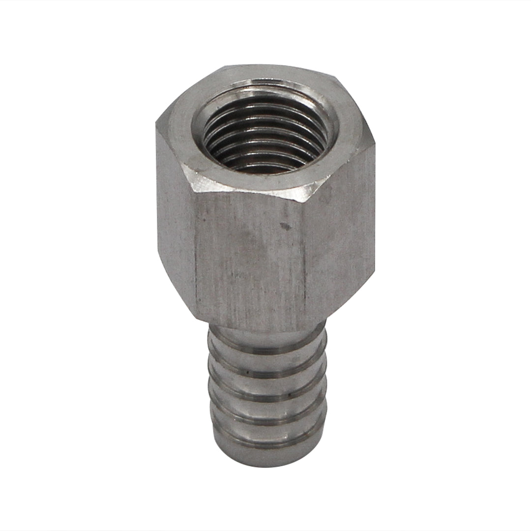 Stainless Steel Barbed Fitting - 1/4" Flared FFL to 3/8" Barb