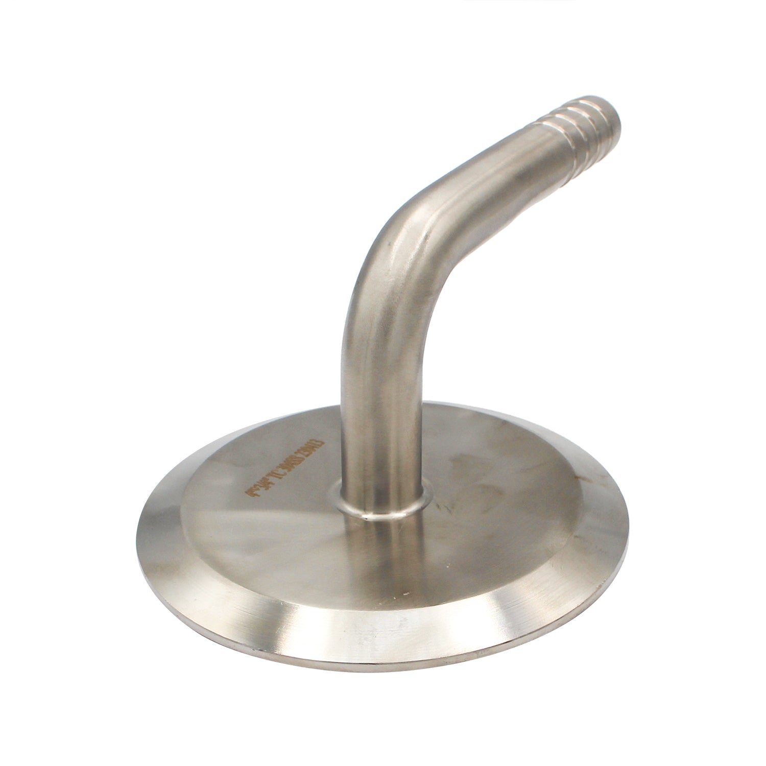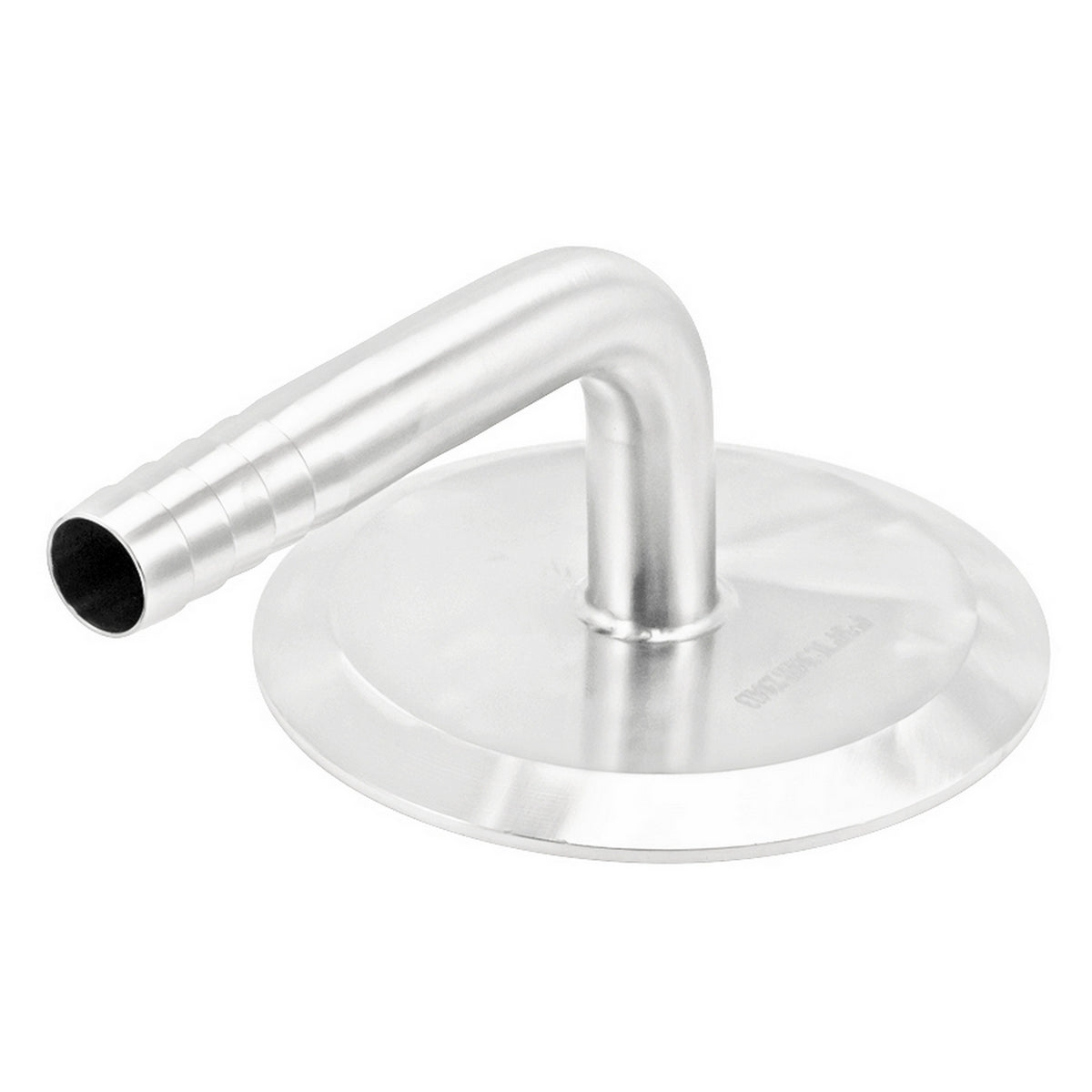 In situations where space is limited and a straight barb isn't feasible, the installation of this 90° elbow onto one of your tri-clover connections becomes highly advantageous. To utilize this component alongside a 4" TC flange, you'll need a 4" TC gasket and a TC Clamp.