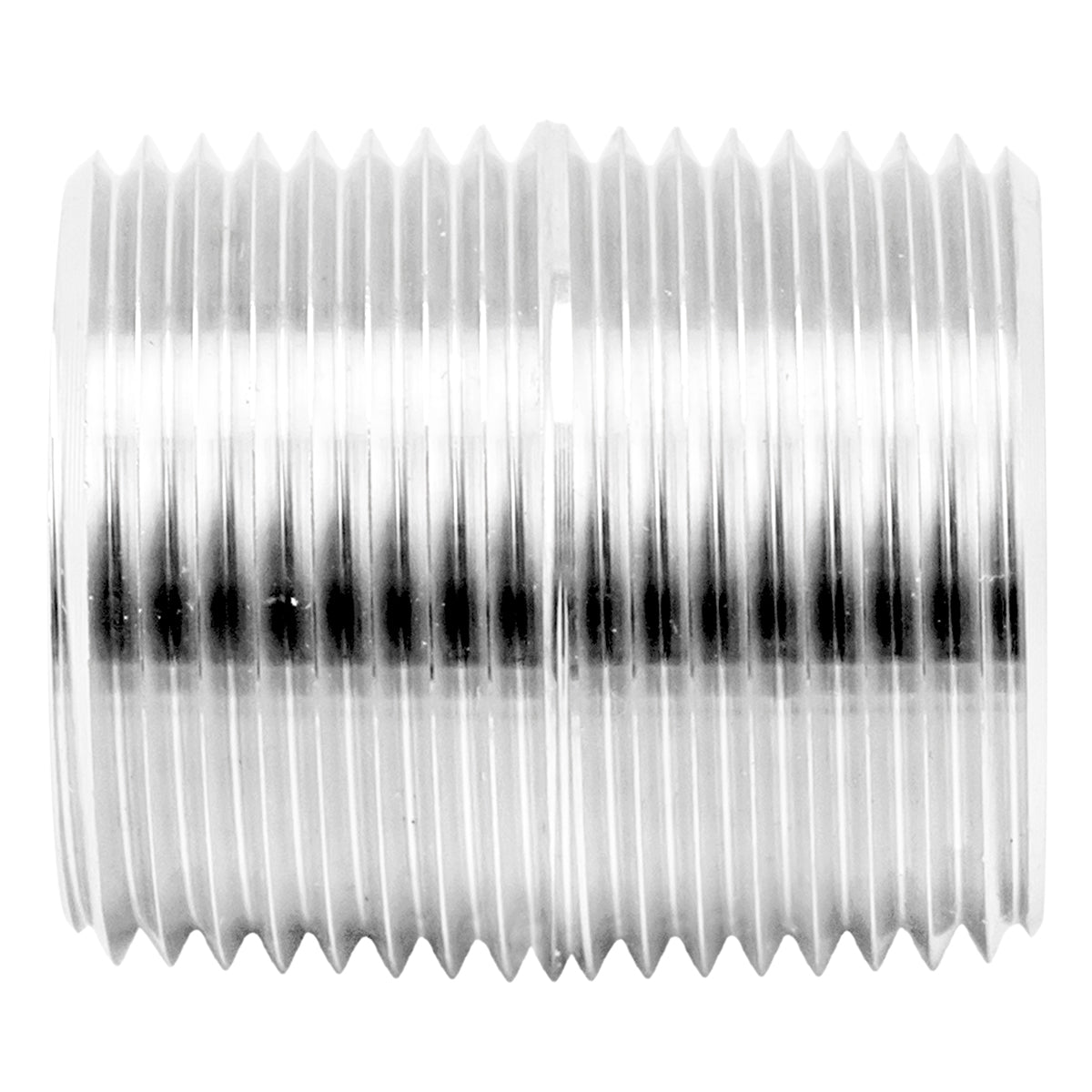 This Close Nipple is made from high-quality 304 stainless steel, ensuring durability and hygiene. It has straight threading designed to connect two female NPT fittings. Specifically intended for 1" NPT hardware, it is excellent for attaching components in brew kettles. A nipple is a short, threaded pipe with male threads on both ends and can be made from various materials such as stainless steel, brass, or copper.