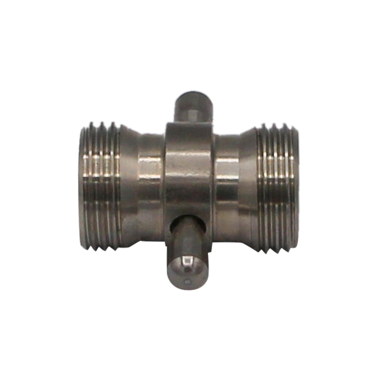 Need to clean two lines at once? Just need to extend some tubing? This coupler is perfect! Made of chrome plated brass, with 7/8" heavy threads, simply thread some tubing on each end and have at it.